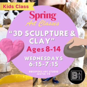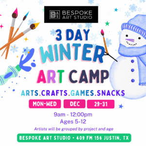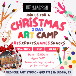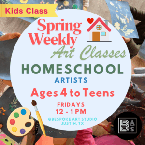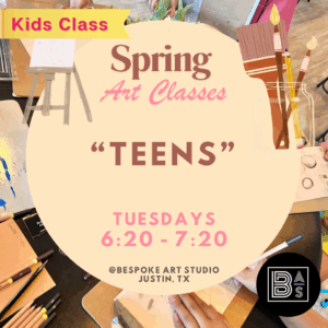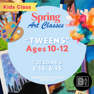 At Bespoke Art Studio in Justin, TX, we offer year-round art classes for all ages — kids, teens, adults, and seniors.