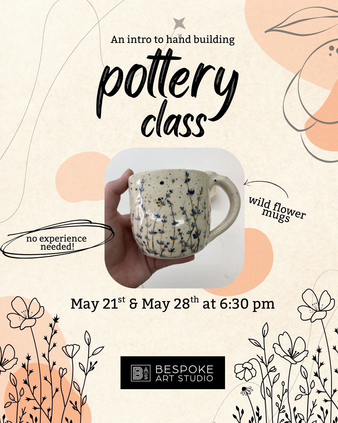 In this guided, beginner-friendly class, you’ll learn the art of hand-building as you create your own set of wildflower-inspired mugs from clay. Over the course of two weeks, we’ll walk you through shaping, detailing, and finishing your pieces using simple techniques, no pottery wheel required.