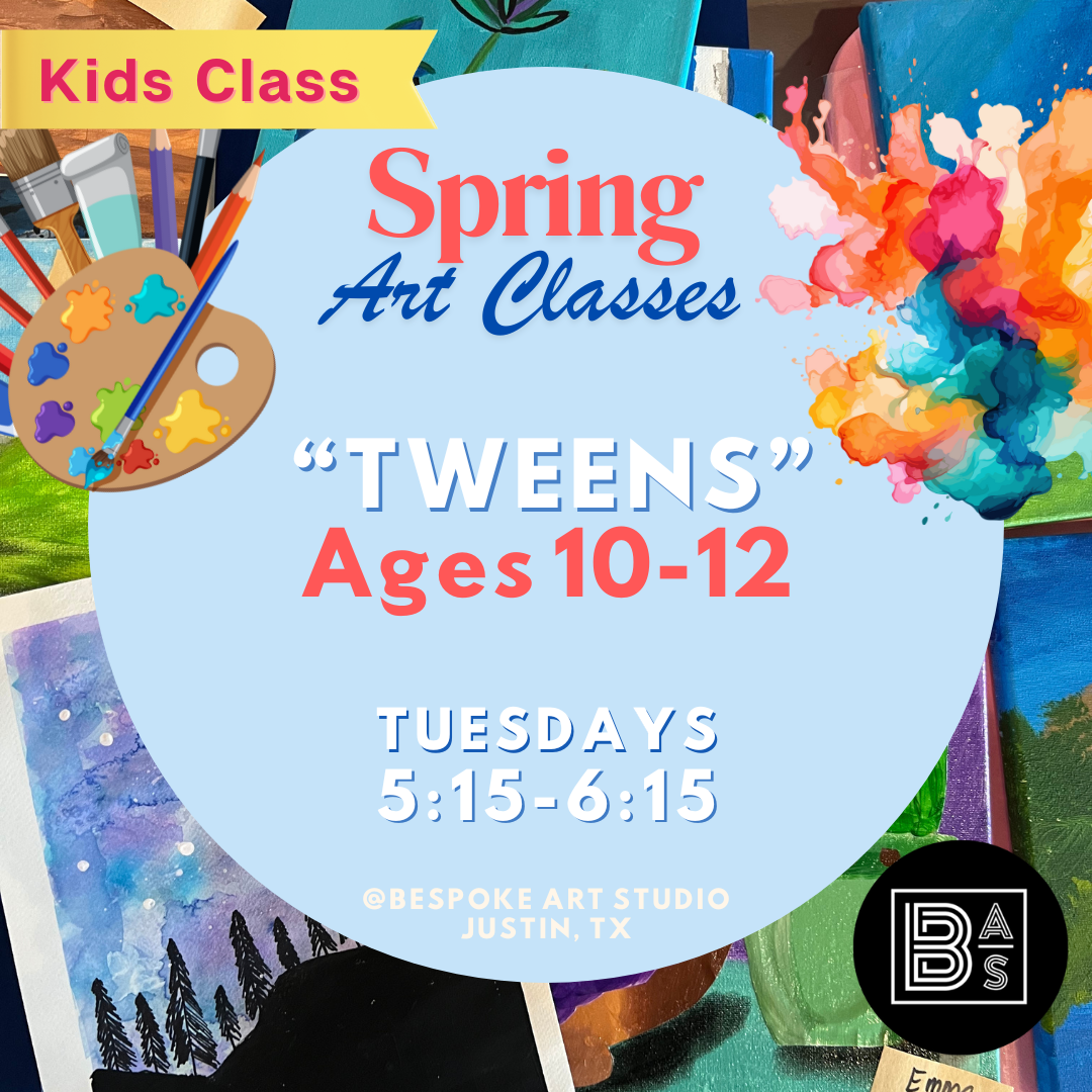 “Tweens” Spring 2026 Art Classes | Ages 10-12 | Tuesdays 5:15-6:15